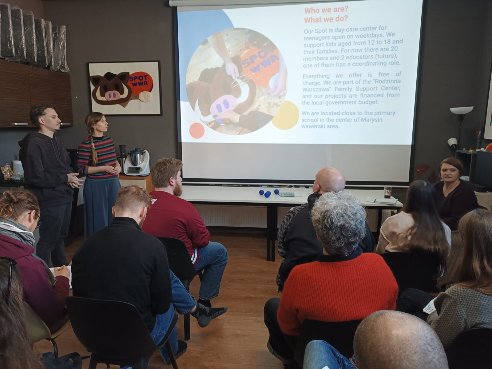 Ostatni dzień to wizyta w SPOT Wawer, rozmowa z pracownikami, ale również spotkanie z kierownikiem Specjalistycznej Poradni Rodzinnej Wawer. Goście zapoznali się ze specyfiką pracy psychologicznej i wychowawczej oraz codziennymi wyzwaniami zespołu. Dużym zainteresowaniem cieszyły się bezpośrednie rozmowy z wychowawcami oraz prezentacja zajęć VR wykorzystywanych w pracy z młodzieżą.